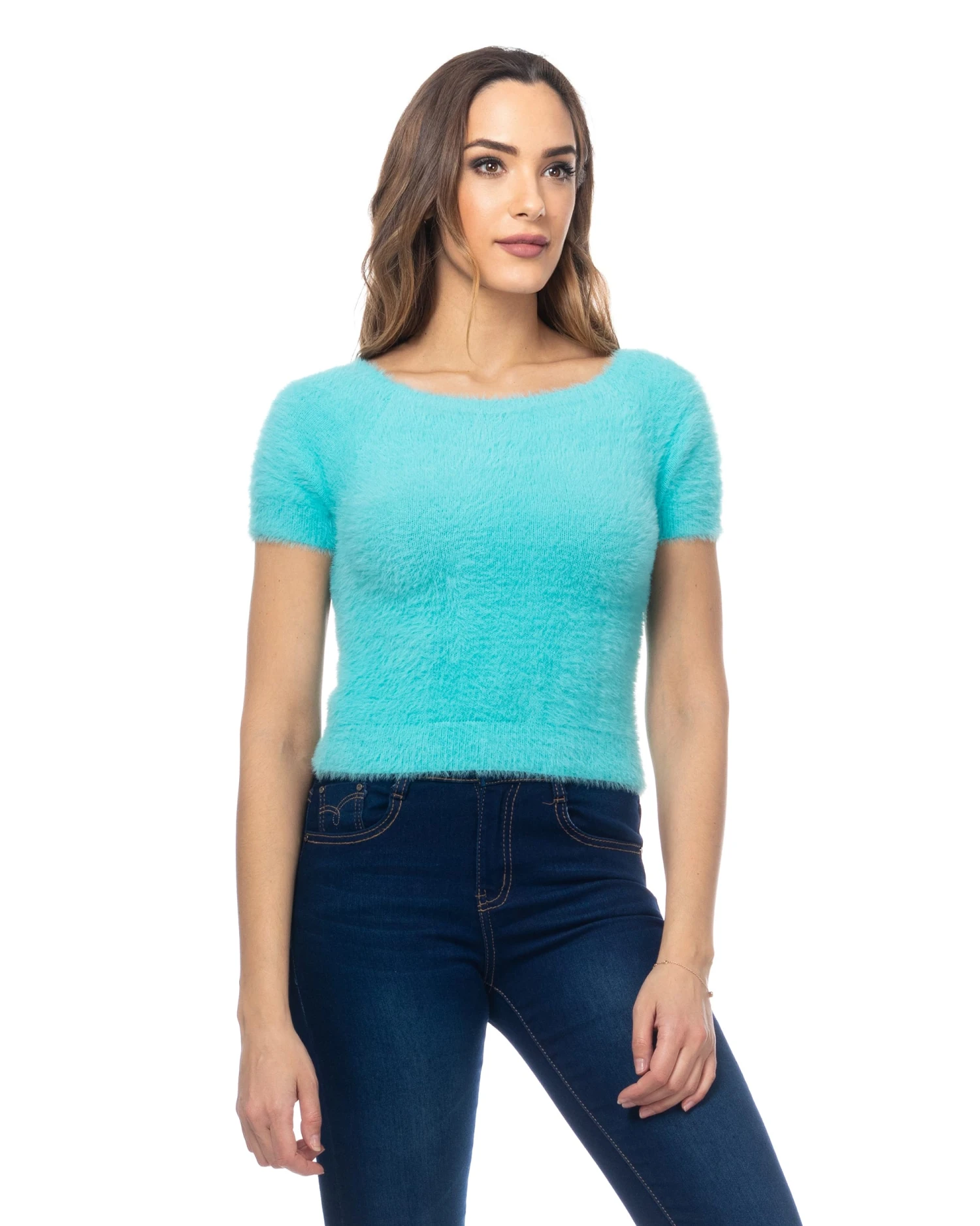 Strickpullover mit Fell-Optik kurzärmelig
